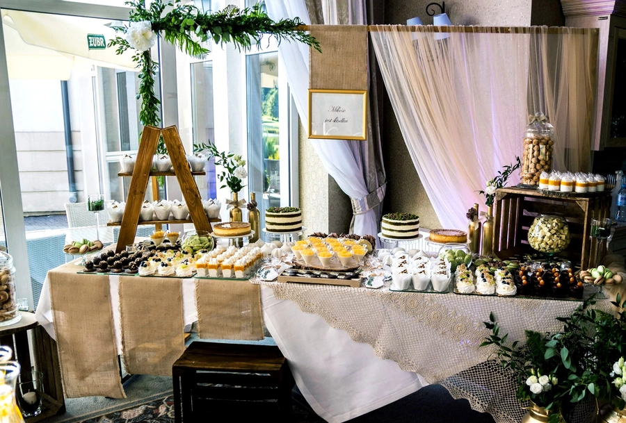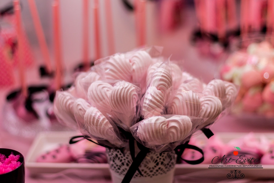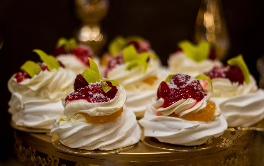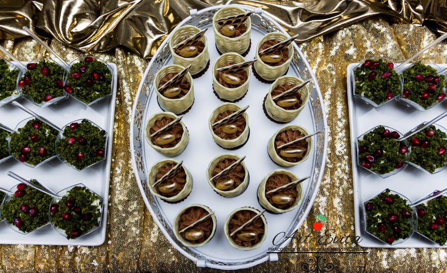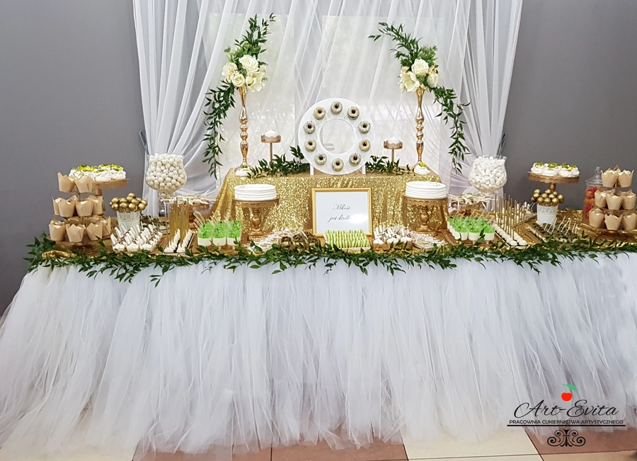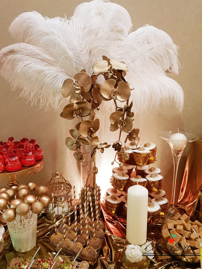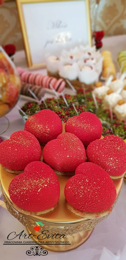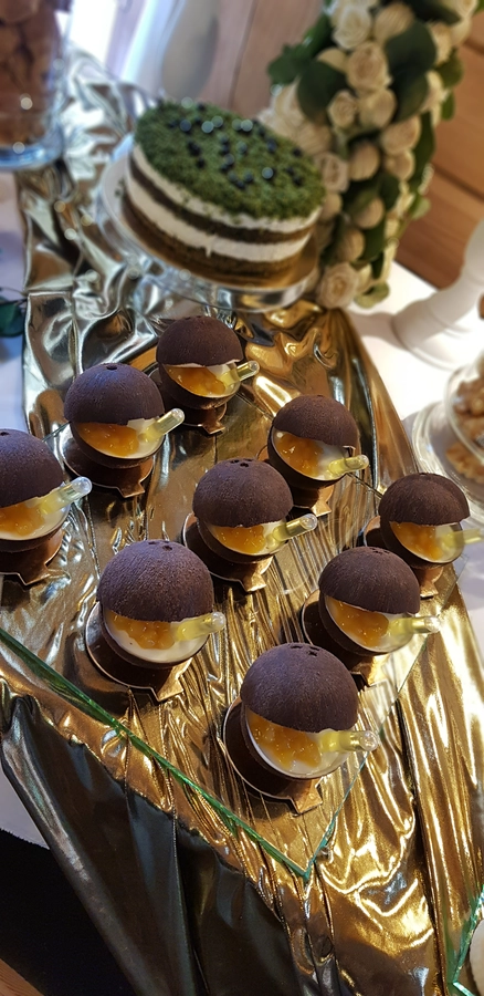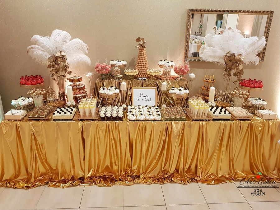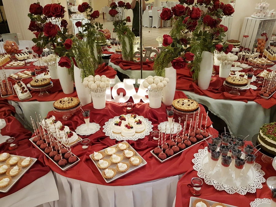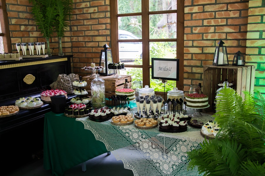 Są to przepięknie skomponowane nowoczesne słodkości w przeróżnych smakach, kolorach, w niewielkich porcjach i pojemnościach, tak aby gość weselny mógł spróbować chociaż kilku sztuk. A jest w czym wybierać! Są to mini deserki, mono porcje, mini pavlove, muffinki, cake popsy (lizaki z ciasta), pop sicles (lody z ciasta), nowoczesne oraz tradycyjne tartaletki, nowoczesne ptysie tzw. shu cakes, lizaczki bezowe, serniki o różnych smakach, tarty oraz wiele innych. Wszystko jest dowożone przeze mnie na salę, rozstawiane i dekorowane, tak aby pasowało do klimatu wesela stylem i kolorystyką.