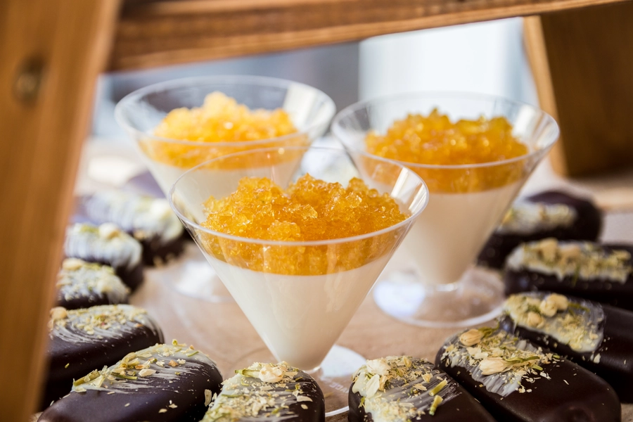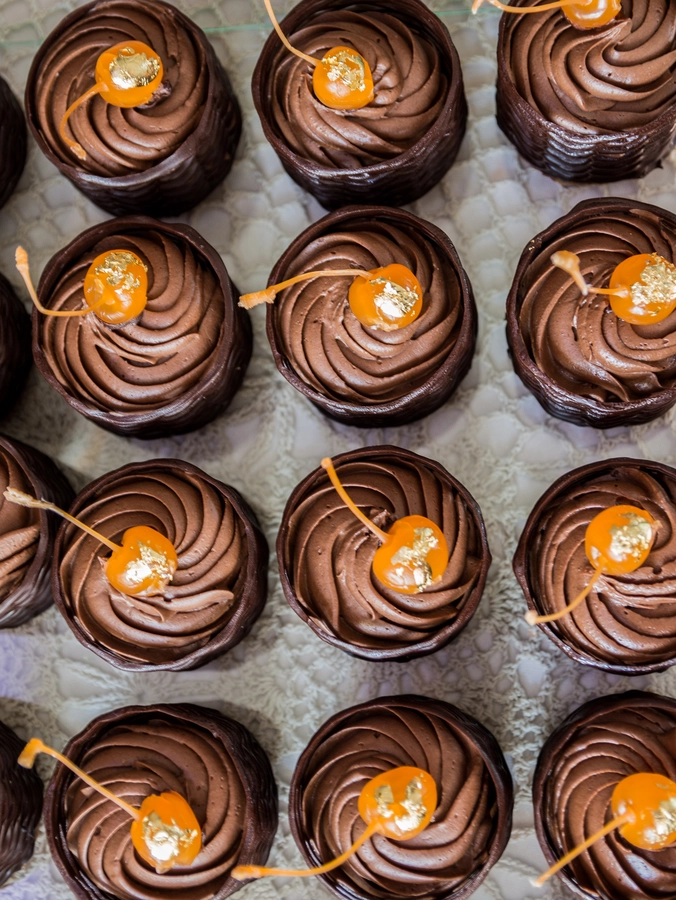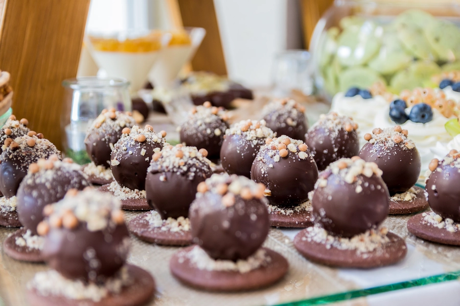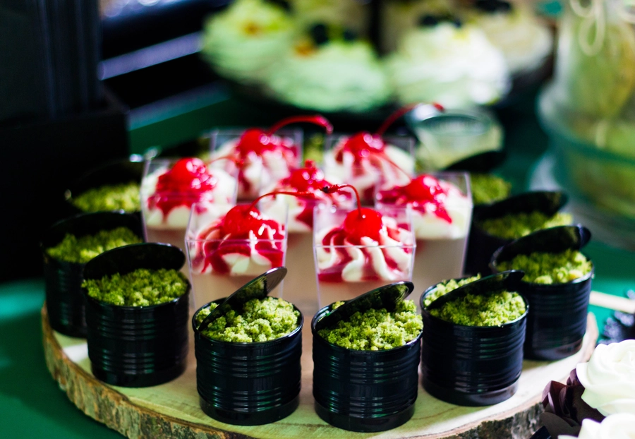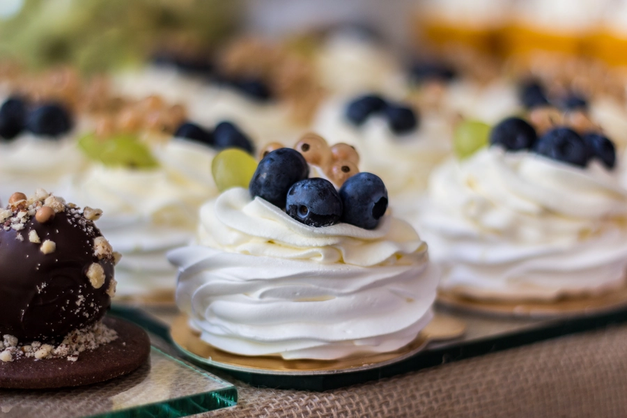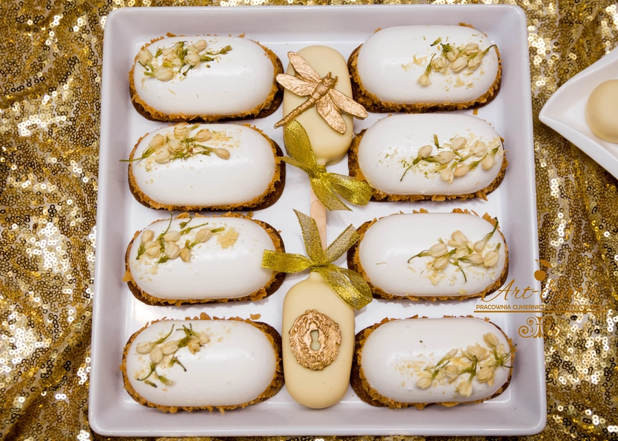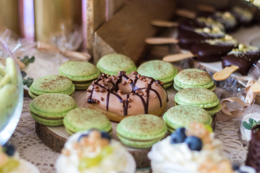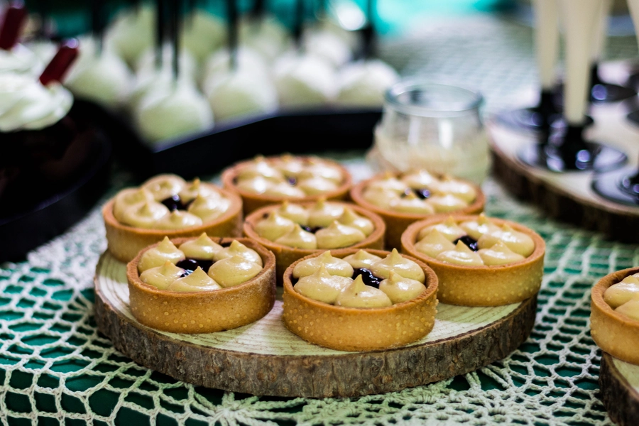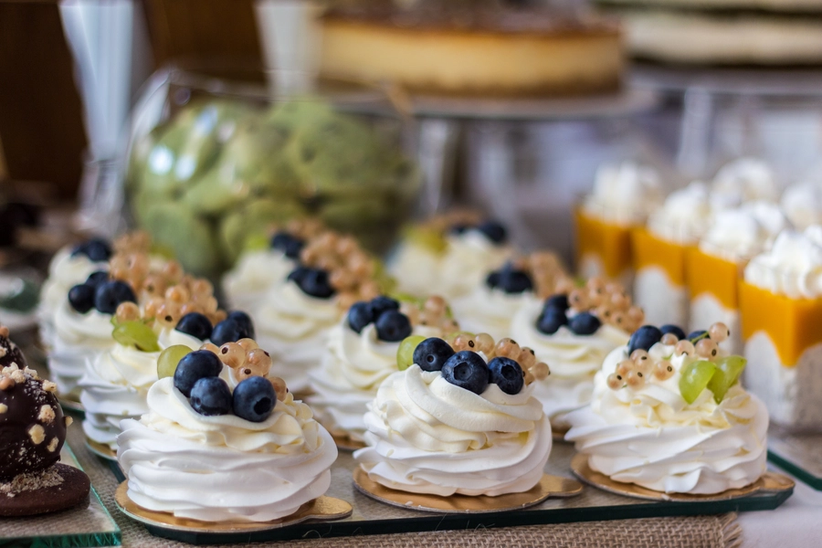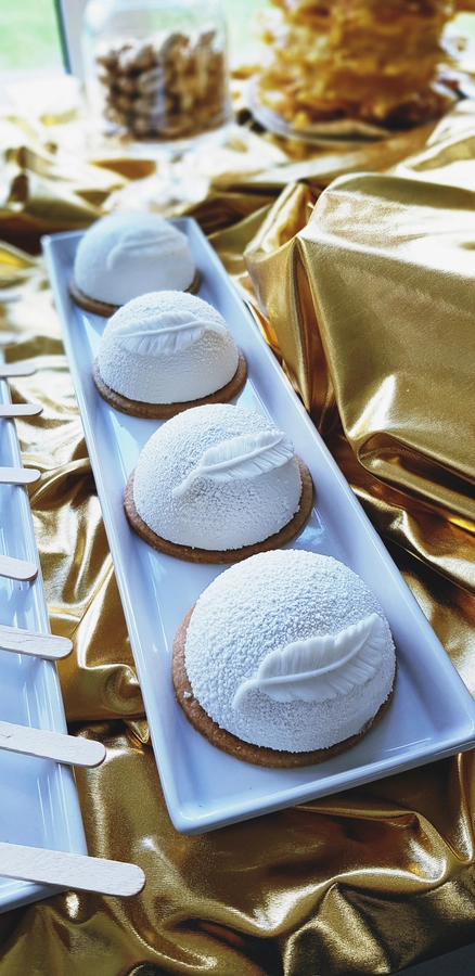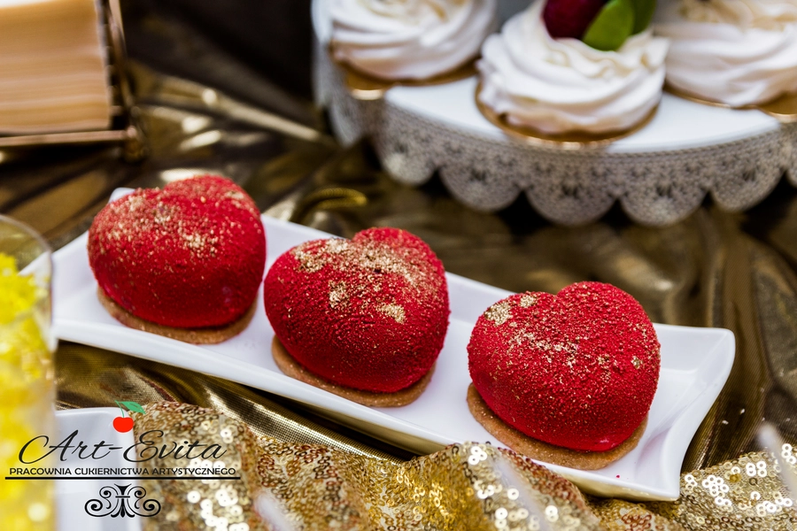Są to przepięknie skomponowane nowoczesne słodkości w przeróżnych smakach, kolorach, w niewielkich porcjach i pojemnościach, tak aby gość weselny mógł spróbować chociaż kilku sztuk. A jest w czym wybierać! Są to mini deserki, mono porcje, mini pavlove, muffinki, cake popsy (lizaki z ciasta), pop sicles (lody z ciasta), nowoczesne oraz tradycyjne tartaletki, nowoczesne ptysie tzw. shu cakes, lizaczki bezowe, serniki o różnych smakach, tarty oraz wiele innych. Wszystko jest dowożone przeze mnie na salę, rozstawiane i dekorowane, tak aby pasowało do klimatu wesela stylem i kolorystyką.