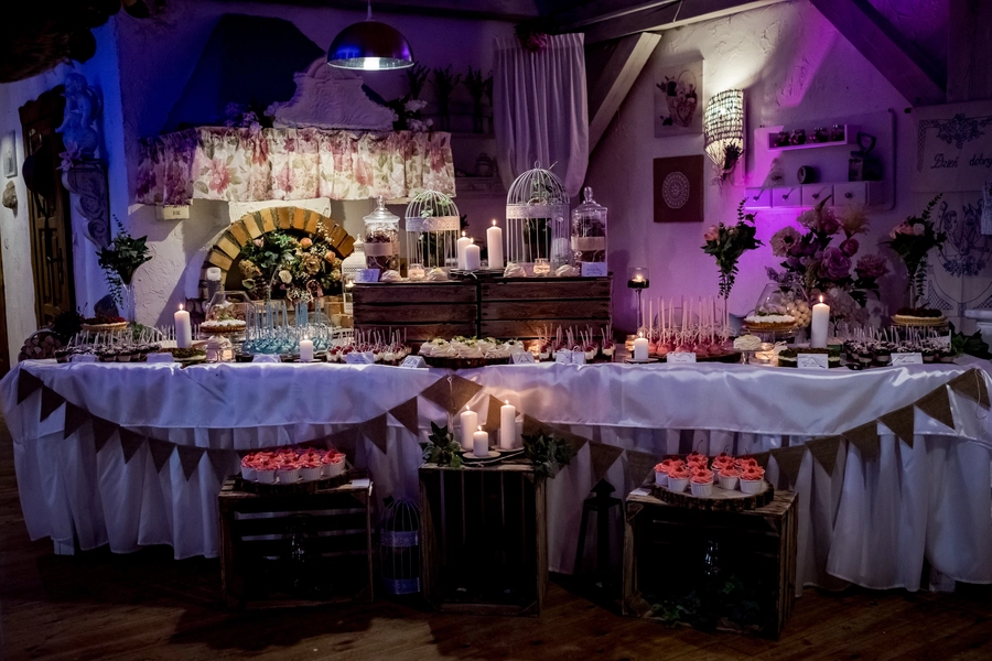 Candy bary, czyli nowoczesne słodkie stoły to coraz częściej pojawiająca się atrakcja na przyjęciach weselnych.