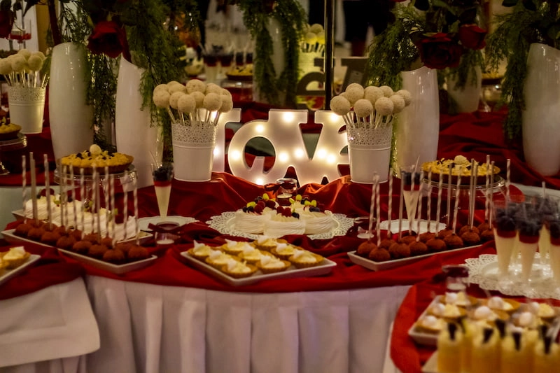 Cena zaczyna się od 50 zł/os. przy 3 szt/os. Na cenę składają się słodkości w określonym kolorze przewodnim oraz użyczone naczynia, tace, patery, świeczniki, wszelkie dekoracje, aranżacja stołu, oraz rozstawienie słodkości w lokalu.