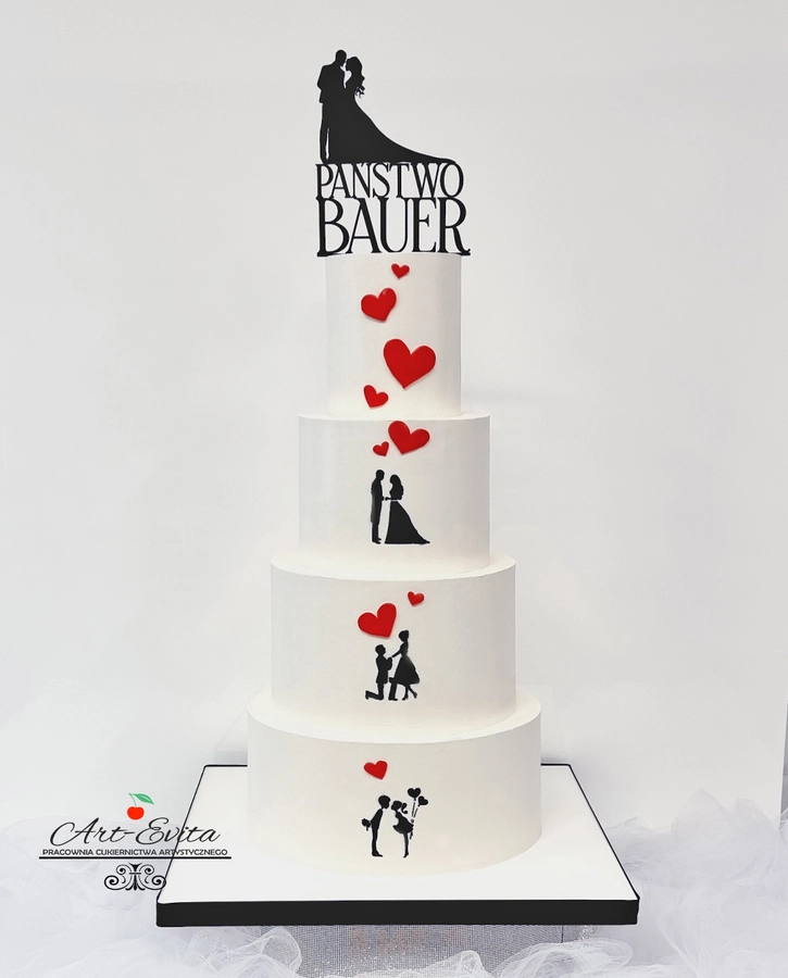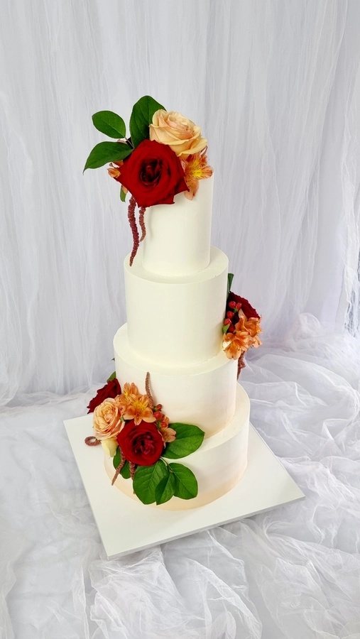 Tort gładki zdobiony kremem to wybór ponadczasowy. Nie podąża za chwilową modą — zamiast tego tworzy efekt, który za kilka lat na zdjęciach będzie wyglądał równie dobrze jak w dniu wesela. To klasyka, która pasuje do większości stylów ślubnych.