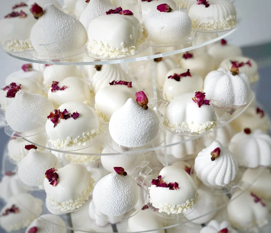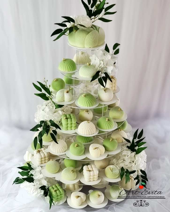 Tort złożony z małych deserów sprawia, że goście mogą spróbować różnych smaków. Takie rozwiązanie jest nie tylko praktyczne, ale i bardzo eleganckie. Wielką zaletą takich tortów jest fakt, iż nie ma potrzeby krojenia tortu, a każdy z gości otrzyma swój mały deser podany w eleganckiej formie i niebanalnym kształcie.